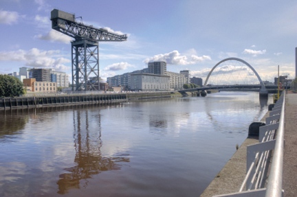 The Finniestone Crane and Finnieston Bridge on the River Clyde, Glasgow.