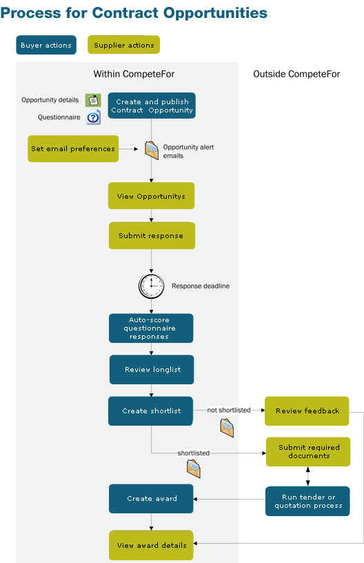 This description applies to Opportunities published as Contract Opportunities. As a Supplier you respond to these directly on CompeteFor, and likewise the Buyer creates the shortlist on CompeteFor.